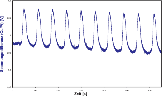 Kurve: Spannungsdifferenz (Cu/Pt). Messintervall: 50 ms [Datum: