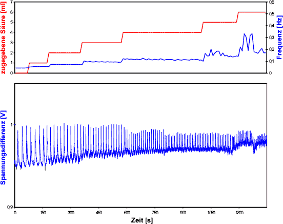 dass die Frequenz umso stärker schwankt, je mehr Säure zugegeben