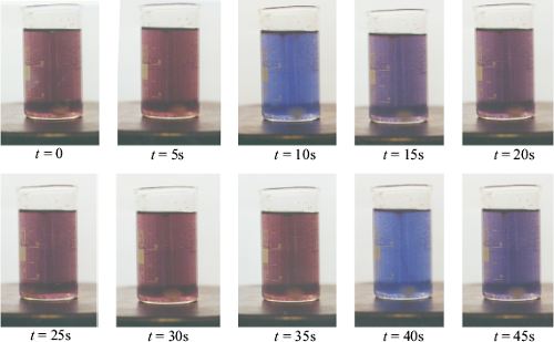 Abb.3: Fotos des Verlaufs der BZR mit Ferroin