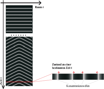 Die vom Brüsselator erzeugten Wellen (sowohl im ein-, als auch im