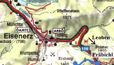 die Stadt Eisenerz befindet, passiert man den "Präbichl"-Pass. Dort