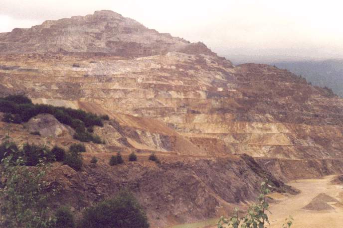 sichtbar, da er fast zur Gänze von den Étagen des Tagebaus