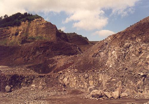 Der Bruch ist in den unter der Bimsdecke liegenden Schlacken und Basalten